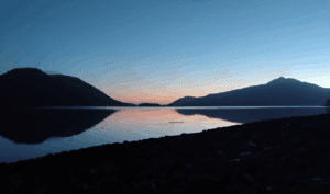 Sunset was coming. I was exhausted in part because I wasn’t drinking enough water because I didn’t want to take the pack off to get it. It was almost dark, and I didn’t want to negotiate the field of deadfalls I knew was coming in order to get to the beach. So I got out my headlamp, dropped the pack where I was, marked it on the Onx, and headed for the beach. I also marked my trail with flagging tape like we used to before electronics as a back up til I reached the beach. When I got a short ways from the pack I finally saw the water but glad I didn’t yield to temptation and go back for pack. I got to the beach and was about a third of a mile to get to the punt. In the last bit of light and a glorious sunset.