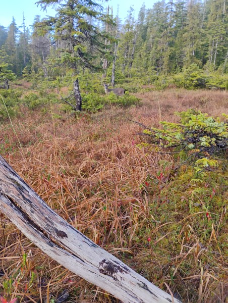 I started up the saddle and worked my way to the top. I checked Onx and I was a mile in. Wow. I have not hunted that far from the beach or truck in a long time. And I felt good.  Until I fell in a little muskeg hole, went down to my knees and elbows in the water. Gun went in, too. The usual.